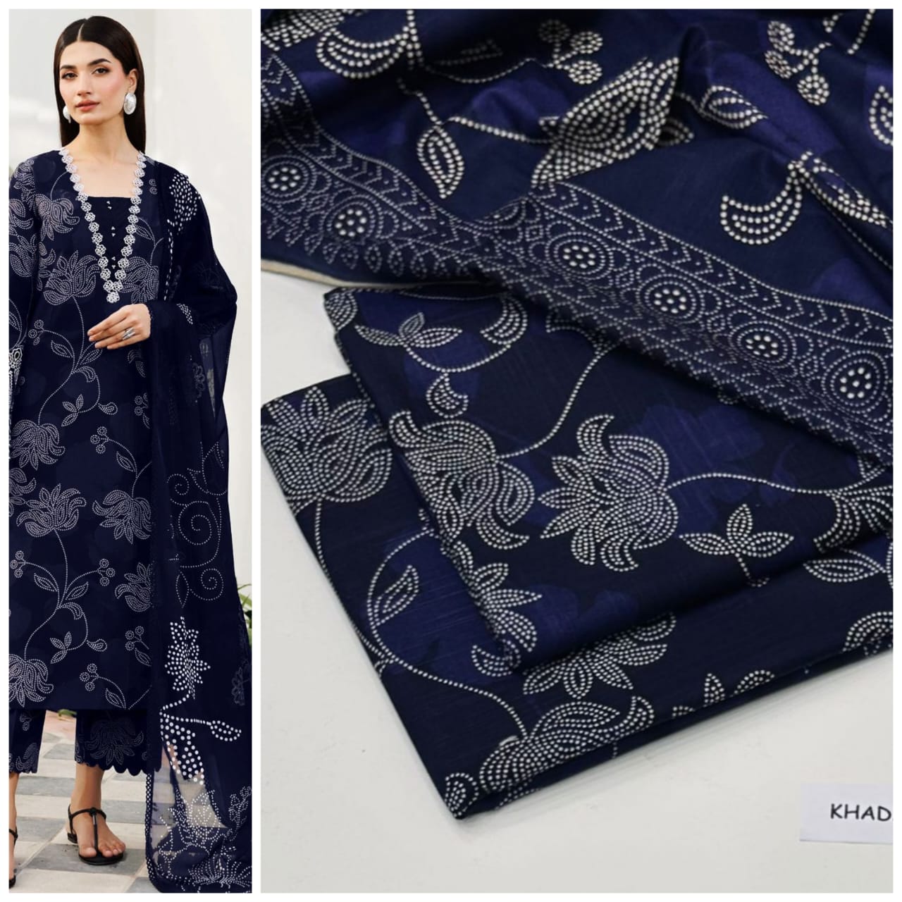 Fabric Detail 3pc Suit : *Khaddar With Khaddar Print Shawl*
